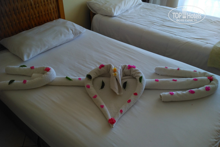 Отель отличный! На рецепшене немного жарковато и плохо ловит вайфай, но это мелочи со всем остальным. Все работники улыбчивые, доброжелательные, с юмором) Комнаты хорошие, есть все необходимое. В день приезда порадовала большая тарелка с фруктами. Вода в комнате в холодильнике была. С водой питьевой проблем вообще небыло, бери и пей сколько тебе нужно и все в бутылках по 0,650 л, очень удобно, и в любом баре можно взять и всегда дадут холодную. Комнаты убирали каждый день, за доллар еще и сделают фигурку из полотенец, но бывало всякое, что и долар оставляли и ничего не крутили, а если крутили, то из тез полотенец какими мы пользовались. Шампунь, мыло и гель для душа пополнили только один раз за 7 дней.