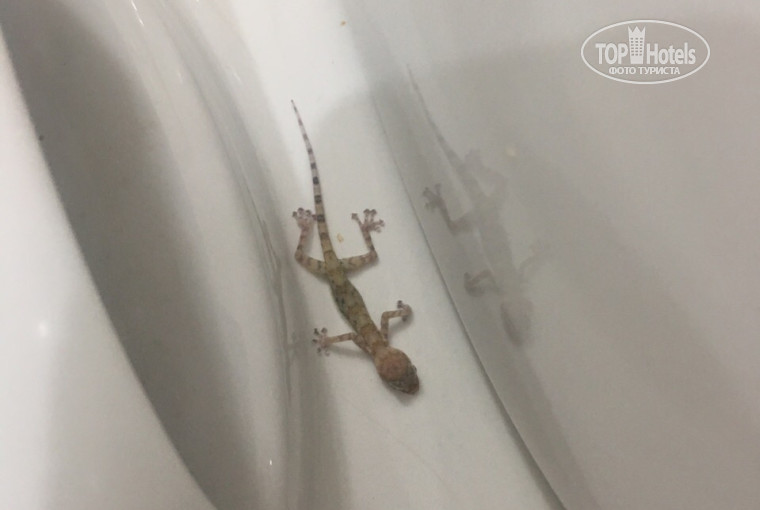 Пошли мы менять номер, работник в возрасте стал нас убеждать что ящериц не будет, они не страшные и вообще задавите если увидите. Работник помоложе резко сделал вид что не понимает русский, ок, объясняю на английском что в номере факин лизардс. Нехотя дали нам номер в той же вилле, но на первом этаже, заверив что ящериц не будет 100%. Тот же работник в возрасте быстренько свалил сказав спокойной ночи (имея в виду идите в сраку со своими ящерицами). Зайдя в ванную мы увидели что? Правильно, гребанную ящерицу, которой 100% не будет, фото прилагается. Мыло из дозатора было белым, но на руки полилась коричневая жижа, жесть. Мылись тем, что привезли с собой. Ок, спать(если это можно назвать сном) пришлось с включенным светом, и накрываясь привезенными с собой полотенцами, потому что к постельному было противно прикасаться, как будто его не меняли от прошлых жильцов.