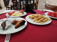 Каждый вечер что-то готовили на гриле. Вкусные колбаски, говядина. Курица всегда была. Один раз готовили кальмаров, но на вкус они не очень. В целом покушать можно.