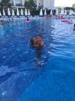Доброго времени суток! хочу поделиться впечатлениями об отеле. Хотя хороших отзывов и без моего много, но всё же) Я отдыхала с родителями и дочкой 3 года, заселили нас в стандарт с тремя кроватями, можно было попросить детскую кроватку, но мы с дочкой привыкли спать вместе, так что не стали) номер просторный, чистый. Уборка каждый день, полотенца меняли регулярно, хоть в этом и не было необходимости)) Еда была всегда и везде, но если полетите с ребенком - берите быструю кашу, за завтраком пригодится. Мы взяли большую пачку и в первый же день забыли ее в ресторане, когда опомнились и вернулись за ней - половины пачки уже не было)) люди решили, что она входит в концепцию ALL INCLUSIVE)) не входит! благо, дочь прониклась местным омлетом и булочками, потому что к середине отпуска кашка кончилась. На пляже так же большой выбор еды, можно спокойно уехать утром и пробыть там до самого вечера. До пляжа далековато, но мы были в курсе и это нас не смутило, шатл ходит каждые полчаса. Пляж хороший, широкий, с лежаками проблем не возникало. В отеле классная анимация, взрослая и детская, веселят всех! Есть хорошая детская комната с кучей игрушек и всевозможной детской развлекухой, так же две детских площадки с горками и качелями, вот тут надо быть аккуратней, потому что там вечерами помимо малышей носятся дети куда старше и просто сшибают с ног! Я по началу молчала, но когда меня и дочку сбил какой-то половозрелый парень - терпение лопнуло и я им устроила)) Еще можно взять коляску в прокат, мы этого не знали и тащились со своей! Интернет отличный, днём работал на 5, ну а вечером естественно подвисал. Алкоголь норм, есть импортный, есть коктейли всякие, вина, вермуты! Дискотека тоже есть, но я туда ни разу не дошла. Ночью, кстати, можно перекусить, есть ночной суп и всякие снэки. В общем и целом отель классный, рекомендую! Хороший, просторный, чистый, с вежливым персоналом, вкусной едой и песчаным пляжем - что еще нужно) планирую вернуться туда в сентябре!