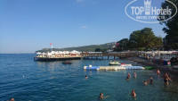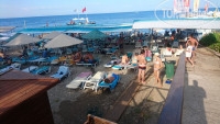 - Пляж. Очень (ОЧЕНЬ!!!) маленький! Лежаков на двоих почти нет. Туалета на пляже нет. Маленькая кабинка для переодевания и "сельский душ". Проходы узкие. Не особо чисто. Галька в перемешку с песком. Лежаки бесплатные. Полотенца - 1 доляр на 1 человека в день. (Берите с собой!). Пирс - территория другого отеля. В общем пляж на 2. Море хорошее, чистое, все супер. Вид (именно из моря) потрясающий.