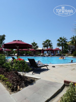 Территория отеля не очень большая, но очень-очень зеленая.Буквально везде цветы, пальмы,огромные фикусы возле бара 4. До моря идти надо по аллее – тоже все зеленое в цветах. Пляж по длине не большой, но широкий. Лежаков всегда всем хватало. Возле бассейна основного приходилось лежаки занимать, когда шли на завтрак примерно в 9 часов. Но на тот момент их было предостаточно. Всем хватало.