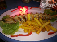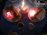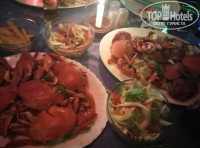 Вся территория при отеле- это кафе, в котором мы чаще всего и ужинали. Вся еда нам очень нравилась, вкусно и сытно, по цене ужин на двоих выходил от 500 до 1500 руппий, зависело от того, что заказывали. Свежайшие рыба и морепродукты готовят на гриле( лобстеры, крабы нужно заказывать за сутки) Ром и пиво покупали в соседнем магазинчике.