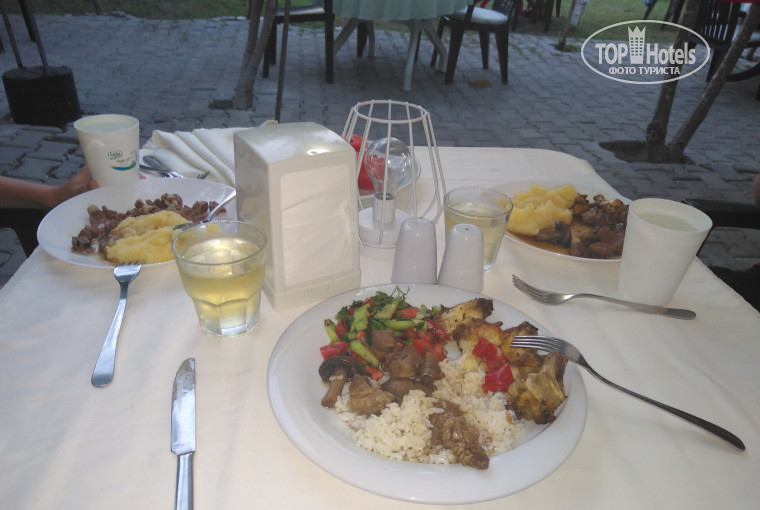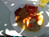 Заселились в отель с опозданием, в связи с задержкой рейса России на 7 часов, в 2.30часа ночи 23.08 (вместо 18.00 22.08). Номер не выбирали. Приехали, мальчик на ресепшене нормально понимает английский, заполнили анкеты, сдали ваучер и паспорта и нас проводили в номер 701. Номер маленький но уютный. На полу плитка и коврик, большая двуспальная кровать кингсайз и раскладушка большая. Чисто, белье белое, полотенец 5шт. Нам хватало + было 2 своих. С номером повезло и без доплат, просторная ванная, фен, мыло, чистая сантехника, туалетная бумага. Шампуней нет, но мы и не любим отельных шампуней. Брали свои. Номер расположен прямо над ресепшен, балкон выходит на бар. Вай-фай в номере круглосуточно, что огромный плюс! Шум особо от бассейна не доносился. По соседству квартира хозяйки privet. Кормили хорошо: завтраки сытные: яйца, омлеты, сыр типа брынза, лаваш жаренный с творогом и укропом, арбуз, сухие завтраки, молоко, кофе, кексы, картошка фри. Обед: курица (ножки и грудки и крылышки не остро), баранина (котлетки),кабачки, баклажаны, картофель по деревенски, кус-кус, нут. К ужину добавляли к гарнирам макароны, мясо: говядина с овощами и грибами, индейкой, рыба на гриле, курица на гриле. Арбузы, дыня, яблоки, слива и овощи к каждому застолью в изобилии, один раз был инжир.Голодными не ходил никто. Повар молодец!!!! Обслуживание по отелю везде дружилюбное, я не видела ни одного недовольного лица от персонала. Хозяйка Роза строга, иногда бьёт обслуживающий персонал, но пока никто от нее не сбежал))), ест она тоже, что и гости отеля, живёт там же.