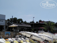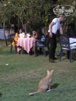 Территория отеля имеет красивый сад: лайм, гранат, оливки, орехи, все растет и плодоносит. Приятно посидеть в тени деревьев. Столики столовой на улице в тени деревьев.