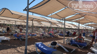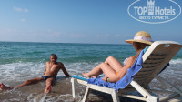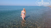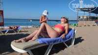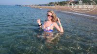 Пляж грязноват,с реки к обеду приносит листву,но утром бирюза и кристальность воды-балдеж...Бар на пляже-все что душе угодно.Арбузами обжирались,волейбольная площадка-норм...Вход не ахти,сразу глубоко,есть покатая гладкая ступенька-увы...