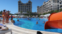 Плюс отеля что никто никого не напрягает.Все довольны.Все на расслабоне.Еды полно.Много вариантов развлечений вне отеля,бесплатный катер в Манавгат от пристани два раза в день,хошь в Сиде 10 минут,хошь бери байк у отеля,хошь дуй в джунгли,два аквапарка в пешей доступности! Есть диско в отеле внизу,не орет,не мешает спать.В номере все работает.