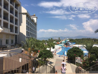 Сама территория отеля небольшая,но это более,чем достаточно. Все близко, выходишь и сразу бассейн(с горками), недалеко бар, очень круто все сделано.