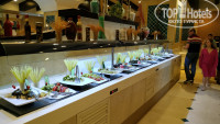 В отеле есть три ресторана по системе шведский стол и несколько ресторанов по системе заказа из меню. Главный ресторан находится основном здании. Завтрак с 7:30-11:00 Обед с 12:30-14:00 Ужин с 19:00-21:00. Один ресторан на пляже с 10:00-18:00 и ресторан круглосуточный у аквапарка. Питание в ресторане разнообразное, утром выпечка, три вида каш, два вида супов всевозможные сыры, мясные нарезки, фрукты, яйца во всех вариантах исполнения и т.д. На обеде также два вида супов, макароны, другие гарниры, огромное количество всякой зелени, мясо и курица в разных вариантах, соусы, фрукты, пирожные, тортики и т.д. Ужин тоже разнообразие что и в обед и пожалуй даже больше. Вы не останетесь голодным это точно. Кто-то писал, что не разнообразное питание..... но никто не писал чего конкретно не хватает из еды. У нас очень привередливый ребенок, но мы всегда находили чем ее накормить. Официанты работают очень хорошо, столы грязными не оставляют. В перерывах между завтраком, обедом и ужином можно перекусить в других ресторанах. К минусам можно отнести не вкусные соки, они как-будто из порошка. В ресторанах подают алкоголь (белое, красное вино, виски)