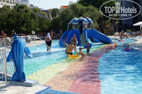 На территории также есть детский городок с детской комнатой и горками, качелями. Пару раз ходили катались с горок, т.к. бассейны и море уже поднадоели. В амфитеатре каждый день детская дискотека и вечернее шоу для взрослых. На территории отеля очень чисто и зелено.