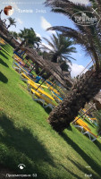 Обед и ужин (обед всегда скромнее): салаты 5 видов, оливки, маслины, супы 2 вида (1 обязательно тунисский остренький, но вкусный), потрясающее сладкое (очень разнообразное), кускус/рис/плов, запеченные овощи, баранина/индейка, курица, макароны, паста, брик, 3 раза за период отдыха давали крабов, лазанья, пицца, из фруктов: дыня, арбуз, персики, слива. В баре около бассейна в обед все тоже самое, что и в ресторане + картофель фри и пицца. Все было очень вкусное, но со своей спецификой. Не стоит забывать, что это Тунис. Для ребенка всегда находили, что поесть. Лично мне очень не хватило блюда из рыбки, был всегда один вид рыбы с привкусом горечи.