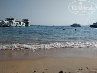 Море расположено между двумя пирсами. Соответственно стоят катера. Большинство из них уплывает утром и возвращаются вечером. Запах топлива при их движении присутствует. Масляных пятен не встречал. Вход в море пологий. Можно в воде на песке полежать, можно детям поплескаться. В зоне между пирсами есть кораллы, но они мертвые почти все или может вид их такой - серые)) Плавают рыбки, но мало. За ними нужно плыть подальше. Буйков нет и смотрящих за плавающих нет(я не видел таких). Пирсы по длине метров 25. Я всегда отплывал подальше от них метров на сто (меньше народу). За пирсами дно не очень чистое - встречаются бутылки от кока колы((.