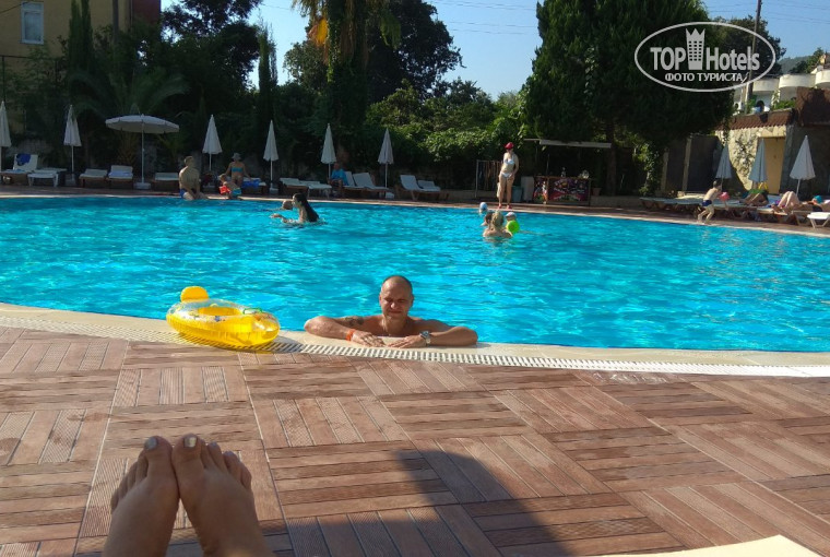 Не понимаю, когда читаю плохие отзывы...такое впечатление, что люди отдыхают в разных отелях. Давайте всё попорядку... Приехали мы с друзьями в отель в 10 утра и так как мы знали , что заселение начинается в 14 часов, то не напрягались расстраиваться, попросили на рицепшине выделить нам комнату, чтобы переодеться в купальники и пойти отдыхать к бассейну или на море. Нам дали комнатку и когда мы переоделись, то нам предложили заселиться сразу, но в номер стандарт, а утром пообещали пересилить в другие номера. Так как у нас по путевке были комнаты эконом, то решили рискнуть. И не прогадали. Утром в 9 ч. Нам дали ещё такой же номер стандарт. Мы остались довольны , причём это всё без дополнительной платы. Были мы полных 6 дней. Отдых супер. Кормили на убой. Всё не перечислишь. Но были и рыба и мясо и курица и баранина. Из фруктов мандарины, апельсины,груши,сливы, виноград 2 сорта,персики, никтарин, лимон,дыня и арбуз. Короче на любой вкус. Это я не перечисляла вторые блюда, сладкое, салаты, сыры и многое другое. Развлечения были каждый день с аниматорами по времени и для детей и для взрослых. Есть детская площадка небольшая и детский бассейн. В большом бассейне в одной половине находится водная горка, средняя. Бар возле бассейна начинает работать с 10 утра. Коктейли алкогольные, пиво, , напитки безалкогольные, чай, кофе разный и в любом количестве. Так же есть бесплатные игры в дартц и настольный теннис. Платно бильярд. На территории есть баня, сауна. Мы сразу сходили на массаж всего тела, чтобы хорошо потом принялся загар. Так нас там так отмыли,как младенцев. Стоило это по 15 долларов. Советую сходить. АТак же ваш гид предложит экскурсии разные. Мы ездили в derme ,а наши друзья ездили в акионариум.. Остались довольны. Так же гид нам подсказал государственный магазинчик с продуктами. Когда выходите с отеля идёте на лево минут 10 и смотрите надпись volwar. Там отличные цены . Ездили своим ходом в центр Камера. Там можно сделать красивые фото возле часовни. Доехать легко на маршрутке , цена 6 лир с человека или 1,5 долора. Мы по приезду брали электро мопеды и ездили в порт. Желательно купите карту. Хотелось написать ещё за уборку в номерах. Оставляли 1 долор, убирали хорошо и всё меняли и постельное и полотенца. Единственное когда в обед горничные убираются то очень громко разговаривают на этаже , даже кричат. Это мешаеи отдыху, особенно кто с детьми. Ходили на пляж, который через дорогу идти минут 10, там чисто, стоят шизлонги и есть навес от солнца. Так же есть бар в котором всегда холодная вода и сладкие напитки. Заходили в море без обуви ,хоть там и камни ,но возле железного мостика по которому мы входили в море нормально, а потом уже плывешь ...