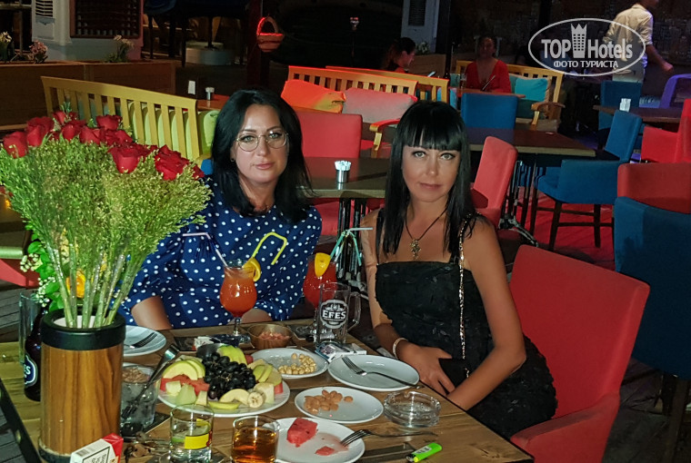 В баре было пиво,вино,раке,водка,коктейли. Пробовала только пиво,вроде нормальное. Бар работает до 23.00,но в 22.30 дают по одному стакану в руки,и пока его не допьешь,ничего не получишь!