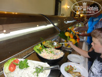 Отдыхали в отеле в сентябре.Мы сюда приезжаем на протяжении 10 лет.В этом году интерьер изменился в ресторане,стало лучше светлее.Начну с заселения,все,как всегда.Приехали рано,заселение в 14часов.Нас это не напрягает.Позавтракали и на море,купальники взяли с собой.Переоделись на пляже,полотенца взяли под депозит.После моря можно ополоснуться пресной водой,душ на пляже.Пообедали,немного посидели в холле и пошли в номер.Номер отличный с видом на гольф-клуб,мы заранее заказывали при бронировании путевки.Учитывая,что мы не первый раз в отеле,нам принесли презент от отеля-красиво упакованные фрукты. По поводу питания можно сказать,что питание разнообразное,всегда присутствует мясо нескольких видов,гарниры разнообразные.салаты,печенные овощи,фрукты(яблоки,персики,виноград,слива,дыня,груша,арбуз). На обед и ужин мороженное 4 видов.На ужин всегда готовят что-то новое.Люди жалуются,что есть нечего,как-будто дома у них ресторан.Еда свежая,вкусная без специй.Утром чудесный кофе,свежая выпечка.Люди сами создают ажиотаж в ресторане,бегут хватают ,как -будто все закончится.Повара постоянно приносят новые разносы с едой,освежают,если чего-то мало остается.Иногда становится стыдно за наших соотечественников,набирают полные тарелки,потом все выбрасывается.Официанты работают,как пчелки,всегда очень приветливы.Только заходишь в ресторан,садишься за стол,сразу спрашивают,что будете из напитков.Ни разу не слышали,что кончилось вино или пиво.Территория отеля -это вообще отдельная песня.Все ухожено,подстрижено,чистенько.С утра возле бассейна идет уборка,мойка плитки.Бассейн чистят специальным пылесосом.Пляж с песочком,по которому хочется ходить и ходить.Лежаков всегда и всем хватало,никто ничего не трогал,даже если мы оставляли на пляже. Море чистое ,вода бирюзовая,это просто -чудо!Спа-процедуры мы посещаем каждый раз,когда приезжаем в Махдию.Такого реллакса не получите нигде за такие деньги.Массажи разные,обертывания,ингаляции,чай с травами,бассейн с гидромассажем 6 видов с морской водой.Есть еще хаммам ,но это на любителя,мы любим русскую парную.Уборку в номере девочки проводили каждый день,меняли белье,полотенца,спасибо им большое.За две недели мы отдохнули очень здорово,укрепили свое здоровье.
