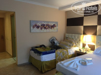 Приехали в отель в семь утра, на ресепшене встретили доброжелательные и отзывчивые девушки. Отдельное спасибо Марине! Все стандартно: оформление, завтрак и непродолжительное ожидание на пляже когда будет готов номер. Предоставили номер в одной из многочисленных семейных вилл. Виллы расположены по всей огромной территории отеля, по большей части окружены садом и утопают в зелени. Из предложенных вариантов вилл, я выбрал номер 16 в саду (ее расположение мне показалось максимально удобным относительно главного корпуса, нашего ресторана "Нона"(черный браслет), отдельного пляжа и главного бассейна, ближе к амфитеатру и в отдалении от шума дискотек и вечерних баров). Большой просторный номер с прихожей, хорошее оформление, кондиционер с отдельной сплит-системой, большая двуспальная кровать и кровать для ребенка, хороший душ и санузел (есть все, включая халаты и тапочки), разумеется телевизор, минибар и сейф. Очень понравились белые крытые каменными сводами переходы-дорожки, пронизывающие территорию сада и связывающие между собой виллы со строениями и инфраструктурой отеля. Днем они защищают от солнца, а в сумерках, фонарями под сводами, создают уютные коридоры сквозь высокие деревья южного сада с стрекочущими цикадами. На мой взгляд, эти переходы прекрасно дополняют Стилизации под архитектуру Древнего Рима, расположенные по всей территории отеля. Видно что вся территория ухожена, убирается чистится, персонал работает. С уборкой нашего номера было все хорошо, на протяжение всего отдыха. Нам, в качестве основного, был предложен ресторан - Нона, и он нас полностью удовлетворял. Шеф-повару хотели бы выразить признательность за кухню, не разочаровались ни в одном блюде. Выбор большой: речная форель и сибас на гриле, раки, блюда из утки, индейки, перепелки, говядины и баранины. Все приготовлено со вкусом, очень хорошо, респект! Напитки все, от пива до шампанского, в т.ч. internetional, мне не хватало только хорошего кофе. Администратор ресторана и официанты - обслуживание очень хорошо, четко и быстро обслуживают по напиткам, также уносят посуду. Ресторан очень небольшой, уютный и хорошо управляется. Учитывая что отель принимает до двух тысяч гостей, видимо основную нагрузку несет главный ресторан, про который ничего не могу сказать, были там только в первое утро, по прилету. Но часто после ужина заходили посидеть в большом холле перед главным рестораном, где звучала живая музыка: рояль, виолончель. Помимо этого холла в главном корпусе, есть еще такой же большой холл, на входе в отель, где ресепшн, и там и там бары, также несколько магазинчиков. В лавке с одеждой сидит душевный парень, зовут Измаил. У него кстати цены норм... когда мы гуляли по центру Белека, а я назвал цену покупки аналогичной вещи в отеле, те продавцы как-то "недобро" смотрели на его ценник)), привет ему. Обычно в отеле дороже. Большая пятизвездка - как правило, это всегда большая бригада аниматоров днем во всех местах, а также хорошие вечерние шоу. С этим CesarS также не подкачал - все на уровне, было не скучно! Спортзал, обширный SPA тоже все ок. Учитывая, что пришлось приехать без внука (были одни из немногих гостей без детей), бассейн с горками, большой детский парк с атракционами и прочее, были нам не актуальны. Мы сосредоточились на том, за чем и приехали - пляж, солнце , море и хорошее настроение..