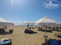 Пляж просто супер, песок кайф! Лежаки всегда можно найти при желании. Море теплое и да как и писали ранее есть холодные приливы от речки рядом, но если уйти подальше то их там нет.
