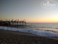 м,дают один кусок маленький,если просишь налить в баре спиртное,то тоже 1 бокал в одни руки,я не пью,мне все равно ,но смотришь,как люди просят 2 бокала ,им отказывают- не приятно.Мне самой не нравилось стоять в очереди за едой, потому что отпуск,а это напрягает.Персонал нервный, между собой ругается,я понимаю турецкий язык неплохо, лучше не знать,что они говорят друг другу о туристах тут же при этих же людях, очень не довольны, когда им на хамство отвечаешь на их языке,но в отеле много не турков среди работников, потому что они не говорят по турецки.На ресепшн вообще разговаривать не хотят, даже если обращаешься с вопросом,как пройти к морю,делают вид ,что не слышат .Море плохое: большие волны сбивают с ног взрослого человека не дают нормально зайти и выйти из моря, можно заходить только с пирса, глубина сразу большая,2 метра от берега и больше 170 см,мне с головой,кто плавает хорошо, поплавать можно,дети в море не зайдут,пляж из мелкой гальки, чистый,море чистое, мусора нет, напитки на пляже холодные,но стаканы моют в тазу водой,от помады остаются следы ( мне за 8 дней доставался " с помадой" стакан 2 раза) .Таракана в отеле видела один раз ,в номере в 6 утра в туалете.Отель не 5 звёзд это точно,если бы писали 3 звезды , было бы проще относится к недочетам.Ехала в отпуск с позитивом,на 3 -й день появился неприятный осадок , именно от отеля,от номера,от персонала,от отношения к туристам.Сразу добавлю,что мне никто ничего плохого не сказал,но людям вокруг при мне говорили пакости и относились плохо,если кому-то надо ,то есть фото Таракана и воды,и фото номера с дырявым полотенцем пришлю вам по почте.