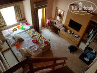 Да номер у нас был двухэтажный с лестницей внутри номера. Второй этаж больше похож на чердак с огромной двуспальной кроватью, туда поселили старшую дочь, она была в восторге. Но там на втором этаже стоит шумный мобильный кондиционер, тарахтит как трактор, а без него тоже никак, т.к. наверху еще жарче, чем внизу. Но нас этот вариант полностью устроил. На первом этаже мы сдвинули двуспальную кровать с односпальной кроватью (которая у окна) и получилось мегаудобное место для нас женой и отдельной нишей для бэбика.