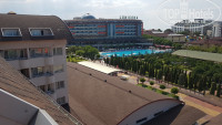 Отель мы выбирали долго и нудно, так как планировали ехать с трехлетним ребенком с которым сильно по экскурсиям не походишь. Выбирали такой чтобы в нём было не скучно не нам не ребенку. Приехали мы в отель в часов в 10:00 утра. Девушка на ресепшене нас оформила, нацепил на нас браслеты, отправила на завтрак в ресторан и сказала после завтрака приходите, возможно сразу заселю в номер, скорее всего пошла нам навстречу из-за наличия карапуза. Девушка выглядела как русская, говорила по-русски, поэтому скорее всего она была русской). Как я понял на ресепшене всегда находится хотя бы одна русская девушка. Да и вообще в отеле с языком проблем не было. всё говорил на русском все все понимали.После завтрака нас как и обещали заселили в номер. Нас заселили в блок Ц. К номеру претензий особых нет. Кондиционер работает только при закрытой двери балкона. Пришлось немного помучиться чтобы это понять)). Сейф в номере платный, 3 доллара в сутки. На телеке есть русские каналы. У нас был пятый этаж, вид с балкона шикарный) Правда наблюдать всю эту красоту можно только стоя, так как перегородка балкона бетонная. Не понравился в номере кран в ванной, который длиной сантиметров 10 и не поворачивается. Под таким даже просто руки помыть неудобно. Также в номере плохая шумоизоляция. Если вы планируете ложиться спать до 12 ночи и для того чтобы заснуть вам нужна тишина, советую вам мне не заселятся в номера которые находятся рядом со сценой аниматоров. Примерно с 20.00 до 00.00 музыка не слабо долбит. С закрытой дверью балкона всё прекрасно слышно. Мне как то на это было пофигу, потому что я сам гулял там рядом со сценой, а вот жена очень жаловалась и говорила что что даже берушами не может заснуть. Поэтому засыпала только после 12 ночи. Как по мне так сцену надо было строить где-нибудь на Камчатке подальше от от жилых корпусов. Аниматоры каждый день по расписанию развлекают народ. Вечером на сцене частенько представления с участием детей постояльцев отеля. Вообще детей в отеле было просто полчища. Особенно когда они собираются вместе в каком-нибудь детском клубе или на сцене аниматоров кажется что это массовый утренник кучи детских садов)). После представления для детишек обычно начинается дискотека для взрослых или какой-нибудь костюмированный номер на сцене. Было и караоке и другие развлекухи. Аниматоры свои деньги отрабатывают. С торца пятизвездочного отеля каждый вечер играла живая музыка, народ танцевал. Обитатели отеля в основном русские и немцы, встречаются и другие национальности но очень мало. Вообще отель состоит из двух отелей пять и четыре звезды с общей территорией. 5 звёзд это это здание в котором рецепшен. Корпуса 4 звёзд разбросаны по всей территории. Постояльцы 4 звёзд могут пользоваться всеми благами отеля кроме ресторана lotus который находится в здании 5 звёзд. На территория отеля расположены рестораны, бары, закусочные. С едой и выпивкой тут проблем нет вообще. Вообще ресторанов на территории отеля аж 5, но в одном из них могут поесть только постояльца пятизвездочного отеля, a 2 ресторана платных. Итого для постояльцев 4 звездочного отеля два ресторана и все остальные бары закусочные и так далее. Кстати на территории отеля не всё бесплатно как я думал. Есть два детских развлекательных зала, один в здании, второй на улице. Все развлечения в них платные, цены зав