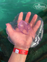 МОРЕ: с берега не зайти – мелко и кораллы, пешком до глубины не дойти, ругается персонал за ущерб кораллам!!! С пирса есть лестница в воду, там сразу глубоко, детям только с нарукавниками. Но вода чистейшая, очень красивого цвета. Есть не большой риф, видели ската, мурену, морских ежей и разных рыб. В один из дней было нашествие фиолетовых медуз, они не жгучие, но плавать было не приятно. Пляж чистый, убирают хорошо. Есть бесплатные беседки с матрасами и навесом, но если вас долго нет – ваши вещи уносят и отдают беседку другим) То есть занять утром и уйти к бассейну – не получится. Ближе к пирсу есть как бы тихая часть пляжа, без детей, не понятно почему именно там!