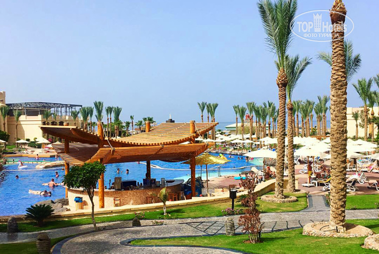 Теперь ОБ ОТЕЛЕ: прилетели в 4 часа утра, у меня День рождения, писали об этом заранее. Дали номер с видом на стену! Просим поменять – говорят нет мест, ждите утра! Легли спать, утром дали др. номер, мебель такая же, но вид частично на море, релакс бассейн и стройку, с большим балконом для вечерних посиделок. Номера хорошие, НЕ маленькие. Большая ванная комната, есть душевая кабина и есть ванна. Но номер в такой части здания – пока найдешь – заблудиться можно. Номер покупали трехместный, в итоге было 2 сдвинутые кровати и раскладушка - это минус! В номере есть чайник, чай / кофе / вода, ТВ с русскими каналами. Территория красивая и ухоженная, персонал старается, бегает и НЕ выделяет иностранцев. Ко всем относятся хорошо, приносят напитки, быстро убирают со столов. Очень рады русским, т.к. большинство отдыхающих это иностранцы и украицы. Детей русских почти нет. В бассейне плавают одни арабы в своих одеждах.