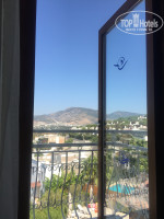 Мне очень повезло с номером (в основном корпусе на этаже возле стойки ресепшн). Только лишь за один этот вид можно ставить все 5 и про остальные мелочи забыть. Бронировала данный тип номера еще при покупке тура в агенстве Coral (доплата была 40 евро). Номер убирали, за десять дней постельное и полотенца тоже меняли - не считала и не следила сколько раз. Сейф в номере, исправный кондер, телевизор, фен. Ночью тихо, если только на баре иногда ребята засиживались и песни пели, то было слышно)) И, когда намаз читался около 5 утра - там внизу на пляже Битез мечеть стоит, оттуда и долетали эти магические звуки.