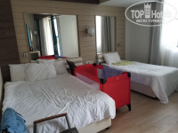 - ЗАСЕЛЕНИЕ. У меня малыш 1 год, спит с мной и я очень переживала какой номер нам дадут, если бы дали с маленькими кроватями, то о сне мне можно было бы забыть.. Но к счастью нам дали номер с оной 2-спальной и одной полуторной кроватью. Кровати не прикреплены к стене (как иногда бывает) и их можно двигать, что я и сделала и подвинула детскую кроватку с другой стороны (см.фото). Спать было очень комфортно и в общем безопасно.