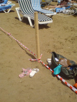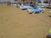 Пляж -4 Широкий, протяженный в длину, песчаный пляж; всегда были свободные лежаки под навесами. Удобный, пологий заход в море. (за 3 дня до отьезда натенули ленту за которую нельзя было выносить лежаки ????????????? основная масса отдыхающих была в шоке .см. фото, два дня с моря ужастно пахло салярой или ........... чем его .... и всем с адми........ ...... !!!!!!!!!! )