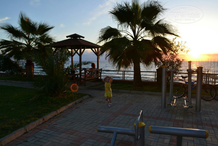 Отдыхаю в этом отеле каждый год.Была в нём и с детьми и с друзьями.Сразу скажу что отель более подходит для активного отдыха с друзьями.Те кто любит "тюлений" отдых вам не сюда.Отель городской и всегда есть куда сходить.Рядом большое количество магазинов,баров и ресторанчиков.За 15 минут езды на автобусе можно доехать до пляжа Клеопатры .Да согласна ехать далеко от аэропорта Анталии,но это того стоит,так как даже в ноябре и декабре в этой части Турции тепло.(Иногда не в сезон бывает дождь,но это не останавливает туристов и многие купаются)Набережная это отдельная тема!!!Вдоль всей набережной стоят беседки,тренажёры и мини кафе.Вид восхитительный .Закаты не описать словами!!Сам город очень чистый,ухоженные улицы ,большие плантации бананов,апельсинов и др. располагаются прям в городе.В отеле персонал приветливый,для тех кто говорит о хамстве -обратите внимание на своё поведение!За некоторых отдыхающих реально стыдно!Дискотека каждый день!И мини диско тоже!Имеется крытый басейн .Хотелось бы отметить что забытые туристами вещи у бара,басейна ,в ресторане персонал возвращает лично в руки владельцам в целости и сохранности.)))В этом году опять летим с подругой в этот отель 11 декабря и при выборе даже сомнений не было что берём путёвки только сюда!!Фото которые выставлю сделаны в конце ноября-начало декабря!!