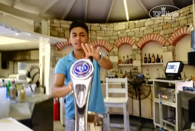 Отель небольшой, но уютный и чистый. Сразу скажу, если вы привыкли к роскоши и лизоблюдству - вам не сюда)) Здесь все предельно просто. На свои 3*. Wi_Fi практически на всей территории. Еды полно, всегда вкусно. Со столов убирают молниеносно - не успеешь тарелку в сторону отставить. Не понравилось поведение поляков? наберут горы еды и ходят орут по всему ресторану. Фрукты-овощи - в изобилии. Пляж грязноватый, лежаки старые и грязные. Но если полотенцем прикрыть - нормально)). Напитки неразбавленные. Персонал по-русски не говорит, но к концу нашего отдыха уже знали несколько важных слов)) "Доброе утро", "Пиво?") В номерах уборка ежедневно, полотенца меняют ежедневно. Баров - 2. Мы жили у дальнего, который рядом с бассейном с горкой. Брал с собой с ужина фрукты ребенку, себе перекусить - никто из персонала слова не говорил, что тарелки нельзя брать с собой. Персонал приветливыйц, общительный, всегда улыбаются, всегда рады помочь, хоть и приходилось на пальцах иногда объясняться, т. к. с английским туговато)). В общем отдыхом довольны с сыном) До сих пор спрашивает, когда еще поедем).