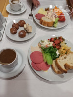 завтраки: всего много свежие овощи, зелень, сыры, колбасы, творог, разные соусы, джемы, мед, нутелла, хлеб, булочки, выпечка каждый день разная один или два вида, горячее картофель, фри, сосиски, хлопья и тд. голодные точно не останетесь. соки и чай и кофе есть!!!