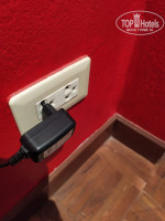 Ванная комната: из двери выломали несколько реек, дыру заколотили чем-то, менять не стали. Душ в пол, на фоне бетонной стены, в целом все старое, местами грязное, но работает. Унитаз работает, но к полу его прикрутить забыли. На стене немного плесени. В целом ощущение по отелю такое же и сложилось - "вроде работает всё, но прикрутить забыли". Сейф работает, но как им пользоваться администрация отеля памятку не оставила. Розетки в номере для наших разъемов подходят плохо, пришлось брать переходники.