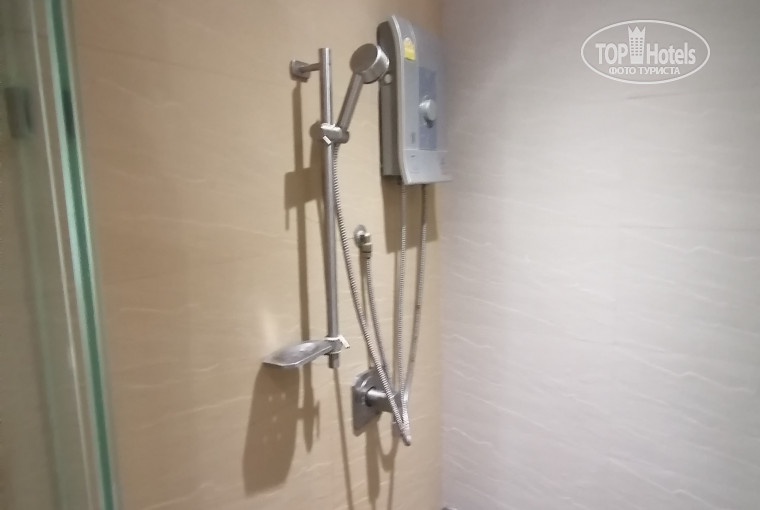 Про номер – жили в 210. Депозит при заселении 1000 бат. Есть интернет, пароль дадут при заселении. Вполне симпатичная комната с удобными кроватями (в комнате их две). Косметический ремонт. Все как обычно. Чистенькая ванная комната с банными принадележностями – все обновлялось. Вид на крышу соседней постройки, но для нас не критично. В номере сейф, фен. Нет чайника. Ставят воду по бутылочки в сутки на человека. В шкафу был зонтик.