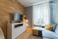 Прекрасные апартаменты соответствуют описанию и фото. Отличное расположение. На кухне находится все необходимое и даже больше. Порадовало наличие чая, сахара, приправ. В шкафу на кухне есть инструкции по пользованию всей техники в квартире. Современный телевизор с выходом в интернет! Были таблетки для стиралки и посудомойки! Аптечка с необходимыми лекарствами. Зонт! Утюжок для волос (!!!). Разрешили ранний заезд. Заранее прислали все инструкции как забрать ключ. Хозяин общительный, быстро отвечал на все вопросы! Отопление регулируется хорошо.Окна выходят во двор. Слышен шум движения трамвая, но это было не критично. Рекомендуем!!!