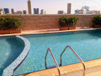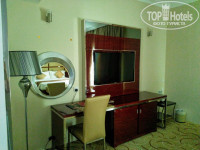 Это была наша первая поездка в ОАЭ, но надеюсь,что не последняя, т. к. нам очень понравилась эта страна. В отель мы приехали в 13-20, оставили паспорта в залог, что то заполнили,подписали и сразу получили ключ от номера. Нести чемоданы и проводить нас никто не вызвался,поэтому мы поехали сами искать номер 511.Лифтов пассажирских там три и ещё один грузовой. Когда идёшь по коридору играет приятная музыка. Даже самый стандартный номер отеля нас поразил своими размерами, очень просторный, мебель новая,зеркала кругом, всё блестит, на стене большой плазменный телевизор, кровать размера кинг сайз, панорамные окна ( хоть и пыльные). В сан.узле тоже все продумано, ванна, биде,фен, веревка для белья,есть одна розетка ,которая подходит для наших приборов.