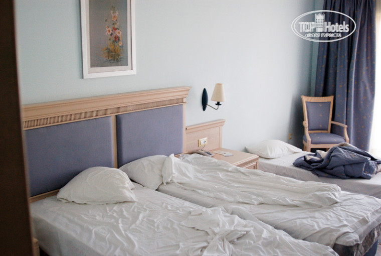 Отдыхал в этом отеле в конце июля 2009 с девушкой. Отель чисто семейный, очень много детей, нас об этом предупреждал туроператор(SOLVEX) и мы были к этому готовы :)) Вылет был вечером, перелет часа 4, пока развозили всех по отелям стало поздно,нас быстренько оформили и в номер мы заползли уже ночью. Заселили нас удачно, в 5 корпус, что до пляжа что до ресторана одинаково,по центру.