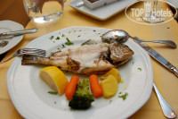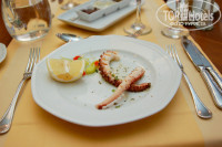 На территории 3 ресторана, 1 общий и 2 "ля карта". Еда в общем ресторане хорошая, всегда есть что выбрать, но особого разнообразия я не припомню, но за 12 дней не приелась, есть итальянский повар, который готовит всякую разную пасту, у которого постоянно собирались толпы итальяшек. Морепродуктов мало, всегда был 1 вид рыбы, филе, но не оч вкусная. Много сладостей всяких разных. Обед с ужином вроде не пересекались. На завтрак пекут блинчики, ну и стандартный набор, яичница, сосикси и т.п.