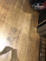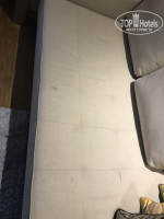 Номер не очень опрятный и холодный (температуру выставили на 16 градусов): двери, пол поцарапаны, ванна не очень чистая, на тумбочках вообще не протирали, зеркало между ванной и комнатой в слое пыли, кое-где конфетти по номеру валяется после Нового года, диван с пятнами.