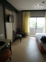 Мы приехали в отель около 11 утра, заселение происходит в 14.00, при заселении необходимо было оставить депозит 1000 батт, у нас с собой были доллары, но рядом с отелем находится обменник, мы сходили разменяли деньги и оплатили депозит. Посидели в холле, подключили вай фай, отзвонились родным и стали ждать заселения. Так как мы в дороге провели около 14 часов, мы изрядно проголодались и заметили, что на территории отеля есть кафе. Мы пошли туда. В меню была и тайская кухня, а так же и европеская. Мы заказали по сендвичу и они оказались очень даже вкусными! После нашего обеда мы продолжили ожидание заселения в холле. Заселили нас в итоге около 13.00. Наш номер располагался в корпусе В, на четвертом этаже. Вид из окна был на бассейн. Сам номер оказался не плохим. Душ работал, вода горячая и холодная были всегда. Кран в раковине подтекал, но не критично, на это внимание даже не обращали. Кровать была большая, сделали ее из 2х средних. Кондиционер работал исправно, холодильник в номере был, постоянно его забивали своими напитками, а отельные просто вытащили и при выезде обратно составили.
