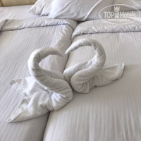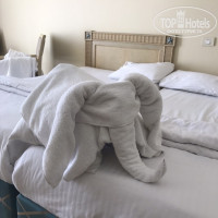 В прошлом году огорчала уборка номеров, в этот раз мы подняли этот вопрос сразу и вуаля, чистый и пахнущий номер ждал нас каждый день после отдыха на море. За шоколадку Аленка либо 1$ нам крутили лебедей, слонов, сердца и крокодила )))) Белоснежные халаты и тапочки тоже без проблем по запросу при заселении.