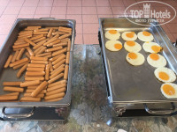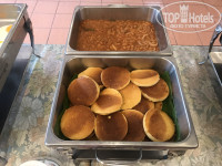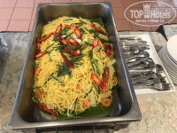 Питались в помещении, которое находится справа перед отелем. Первые дни еда стояла на открытых поддонах, вся холодная, к концу отдыха появились подогревы и крышки. Но та же яичница всегда была холодная, такое чувство, что ее жарили где-то в другом месте, а пока везли – она успевала остыть. Ассортимент в принципе хороший – яичница, рис, лапша, сосиски, ветчина, иногда курица или мясо, овощи, вкусный йогурт в пластиковых стаканчиках. Из фруктов: арбуз, ананасы, бананы и папайя. В общем голодными не были. Не хватало круассанов, которые до этого были во всех отелях, посещаемых мной, вместо них были оладьи. Скатерти на столах грязные, все в пятнах, постоянно не было салфеток, приходилось просить. Один раз мы увидели под нашими ногами, огромного таракана, после того как мы заорали, его тут же раздавили, это было крайне мерзко и противно. С тех пор всегда посматривали на пол. Один раз мы рано поехали на экскурсию, заказали заранее ланч-бокс, спускаемся на 1 этаж чтобы его получить, на ресепшене одна схватилась за голову, типа забыла про него и куда то умчалась. Мы прождали мин 8, она так и не вернулась, больше ждать мы не могли и уехали без него – неприятный момент.