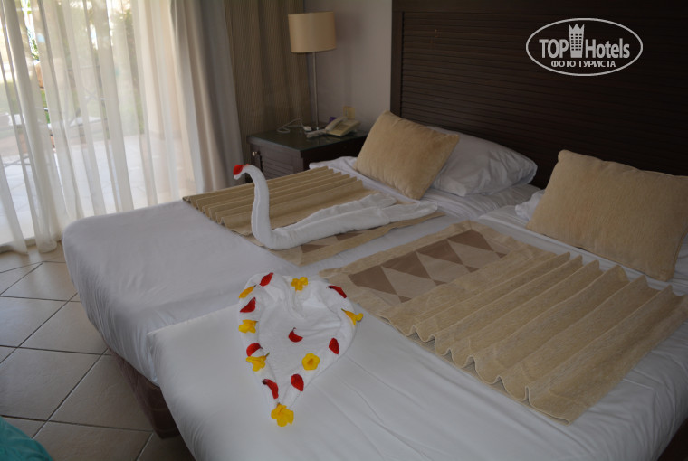 Наконец решила написать отзыв) Отличный отель, на территории 3 отеля, можно спокойно перемещаться по всей территории. Подогреваемые бассейны для деток, горки. Очень большая, чистая и зеленая территория. Мы были в номере на 1 этаже, очень удобно с ребенком и шикарный выход с балкона. Разнообразная еда, хороший сервис. Всегда были фрукты. Пляж хороший, с ребенком самое оно - мелко, песочек. С коляской можно везде проехать. Были в апреле, да был ветер, но он не напрягал абсолютно. очень довольны отдыхом и рекомендую этот отель. Единственный момент- не хватало детской площадки для малышей. Площадка и горки на ней для более взрослых детей, моему ребенку 2 лет на ней не полазить.