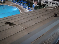 1. Номер достался на втором этаже главного корпуса с видом на бассейн. Плюсы - тишина, 2 комнаты, есть микроволновка. Бесплатные - wi-fi, холодильник и сейф. Минусы - сантехника старая, еле работает. Пол балкона вровень с крышей, по которой кошечки (их превеликое множество в отеле) заходят в номер. Плитка стационарная перегорела на второй раз включения (пользовались переносной старой, ржавой, но рабочей, хотя первый раз включать было страшно).
