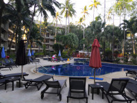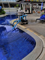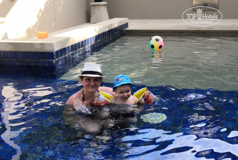 По поводу территории отеля: небольшая, компактная, корпусы стоят по кругу, как я поняла 2-3 корпуса самые тихие, потому что те, что возле ресторана и ресепшена страдали от громкой музыки анимации днем возле бассейна, там все очень близко. Зелено, красиво, листья убирают не тщательно. И тут самый шок для отеля 4+ - грязные бассейны первый 5 дней нашего пребывания! Они реально были коричнево-зеленого цвета, от них пахло хлором, но народ все равно купался.... Мы побоялись. Затем притащили очистительные установки в виде бочки-фильтра, из которой выходили 2 трубы: одна забирает воду, другая тут же выливает ее обратно в бассейн. Спустя пару дней работы таких установок, бассейн просветлел и в конце концов вода стала нормального синего цвета прозрачная. Бассейны неглубокие, все для детей, неинтересные, маленькие. На горках катался мой сын и я, они почти одинаковые, быстро надоедают, сверху всегда был смотритель таец. В бассейне на выходе с ресепшена и ресторана проводили анимацию, пенные дискотеки для детишек, взрослым было скучно. Детская анимация вечерняя была веселой, но часто повторялась, на английском языке все. Есть платные мастер-классы разные каждый день для детей, стоят 350 бат в среднем за 20-30 мин. Детский клуб есть, там тайка-аниматор, но она особо не развлекала детей, в детской комнате все уже старое, лего в коробке, немного детской мебель, горка с шариками, игрушек мало, скучнова-то. На втором этаже для подростков плейстейшен, можно поиграть и есть детский туалет.
