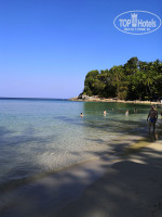 Пляж рядом через дорогу метров 200, проход через лесок, живописно, красивые деревья, висячие качели (которые потом сломали), парк сам замусорен, спуск к пляжу через макашницы, там кафешки на пляже и всякие шейки и блинчики по 50 бат. Сурин - пляж красивый, узкая береговая полоса, до моря совсем близко утром и днем хороший прилив, сразу глубина, чистейшая вода. Но на дне встречают и камешки местами и мусор в виде зарытых мешков я видела, пару дней приплывали медузы размером с ладонь темно-синего цвета, вроде неядовитые, брали в руки, планктон утром и днем не кусался почти, а вот вечером заметно покусывал и был сильный отлив. красивые закаты конечно! Брали скутеры покататься в море, они стоят далеко от берега, к ним везут на лодке, стоит 1500 бат за полчаса. Но там в море был сильный ветер и волны, удовольствия не получили, даже было страшно.