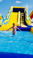 Начался наш отпуск с этого отеля. Заехали мы сразу, и побежали соответственно на пляж, который находился в 50м. от отеля. Пляж волшебный, песок и чистота, очень зашел. Вернувшись в отель, нужно было конечно покушать. В ресторане при отеле мы это сделали конечно, нам показалось дороговато, но салаты и супчики были вкусные! Пару дней мы питались в ресторане при отеле, уборка номеров проходила по принциппу два раза в неделю, постельное не менялось ни разу. На третий день мы питались в соседних кафешках про которые еле удалось узнать, т.к. территория вся была перекрыта другимии частными отелями и якобы не было других кафе по-близости, как обьяснял нам персонал отеля. Но! Мы нашли у озера Дон-узлав и питались там...а... а., завтрак у нас был в отеле, был не плохой и кашки и блинчики, компотики и чаи, молоко с хлопьями, вообщем по принциппу шведского стола, было замечательно! Сам пляж, хочу рассказать о нем, очень чистая и широкая песчаная полоса, очень и очень хорош, на пляже есть батуты и всяческие развлечения для детей и взрослых, конгда был шторм на море, мы ходили купаться на соленое озеро Донузлав, и кстати детям там нравилось больше, прозрачная вода и крабики!