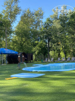 В отеле были второй раз, первый раз на сутки остановились, отмечали ДР, особо ничего не успели посмотреть, так как приехали вечером, а днём дождик лил. Вот решили поехать второй раз. Территория большая, ухоженная, с декарациями в виде домика Бабы Яги, Зайцев, грибочков, Кот учёный на цепи и тд) Для детей развлечений много: детская площадка (горки, качели, лего), аниматоры в течение всего дня (с 11:00 до 22:00), прокат велосипеды, ролики, самокаты, игровые автоматы ( платно 70 руб жетон) тир с призами ( 350 руб 10 выстрелов) , удочки 500 руб на 4 часа)