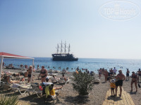 Приехали в отель около восьми утра,вышло более половины автобуса.По приезду попросили чемоданы оставить слева от входа в лобби,думали для обработки,но ничего подобного не было.На ресепшен,попросили заполнить анкету,одну на номер,надели браслеты и отправили на завтрак.При входе в ресторан,как и при входе в лобби стоит тепловизор,по ресторану перемещение и обслуживание происходит только в масках,которые бесплатно выдают при входе.Еду и напитки раздают только сотрудники ресторана,думал из-за этого будут очереди,но оказалось такого не бывает,ни на завтрак,ни на обед,ни на ужин.Всё происходит настолько оперативно,что больше двух человек к блюду не стоит,и еда не заканчивается,ждать нового подноса не приходилось.После завтрака,чтобы не ждать двенадцати,решили вопрос с заселением.За 20 долларов,выбрали номер в бунгало на втором этаже,который был готов,минут через тридцать.Номер просторный,с двухспальной кроватью и полутораспальным диваном,плюс большой балкон,бар с безалкогольными напитками,единственный минус,старая мебель.WiFi бесплатный,работает на всей территории отеля,причем в номере даже лучше,так как два роутера висели на столбе,напротив балкона.Про еду ,много писать не буду,большой ассортимент:рыба,мясо,курица,индейка,сыры,салаты,всего ,за 10 дней,мы и не перепробовали,максимум половину,не было только,ракообразных и моллюсков.Алкоголь местный,но хороший,вскрывают на глазах,бутылки с акцизной маркой и дозатором,есть даже шампанское Holidays (сухое).На территории отеля,также есть снэк бар и кондитерская,в которых можно перекусить в дневное время.В кондитерской есть бесплатное мороженое,4 вида,два,типа эскимо,рожок и фруктовый лёд.Пляж интересный,он как бы поделён на две линии.Первая у моря на песке под навесами,вторая на земле,под соснами.Заход в море галька,лучше заходить в коралках,есть пирс с двумя лестницами.Море глубокое,буквально метра через четыре,скрываешься под водой.Для любителей бассейнов,их три.Два больших,в одном из них проходит гимнастика,и маленький с двумя горками.Днём,особо развлечений нет,дартс,бочо,и т.п. Вечером в 21:30 ,пять дней в неделю разное шоу в амфитеатре,затем живая музыка или дискотека,возле бара у бассейна,а два раза в неделю,пати шоу ,в отдельной зоне,под открытым небом,с местными диджеями,красивыми декорациями и эффектами,словами не передать,кто любит дискотеки,оценят.Персонал отеля вежливый,и видно,что действительно стараются исполнять пожелания отдыхающих. Для любителей шоппинга,рядом с отелем находится променад,переходите дорогу и направо:магазины,экскурсии,аптеки... Можно съездить в Кемер на автобусе,остановка чуть левее стоянки такси,стоимость проезда 4 лиры или один доллар.Лучше разменять небольшое количество долларов в лиры,так будет дешевле.1 доллар=7,4 лиры т.е. ,при оплате долларами,вы платите практически двойную цену за проезд,да и в продуктовых магазинах,цены в лирах.В общем отель нам понравился,свои 5 звёзд,в среднем сегменте,он оправдывает на все сто.Рекомендую!