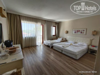 Приехали в отель группой человек 10, в 10.00. Предложили сразу сходить на завтрак, а потом решить вопрос с заселением. Сходили попили кофе. Вернулись на рецепшен и нам сразу предложили заселиться, но в 19 домик, то есть самый дальний на третий этаж. Нам это и надо было. Подальше от шума и суеты. В 11.00 мы были уже в номере 1944.